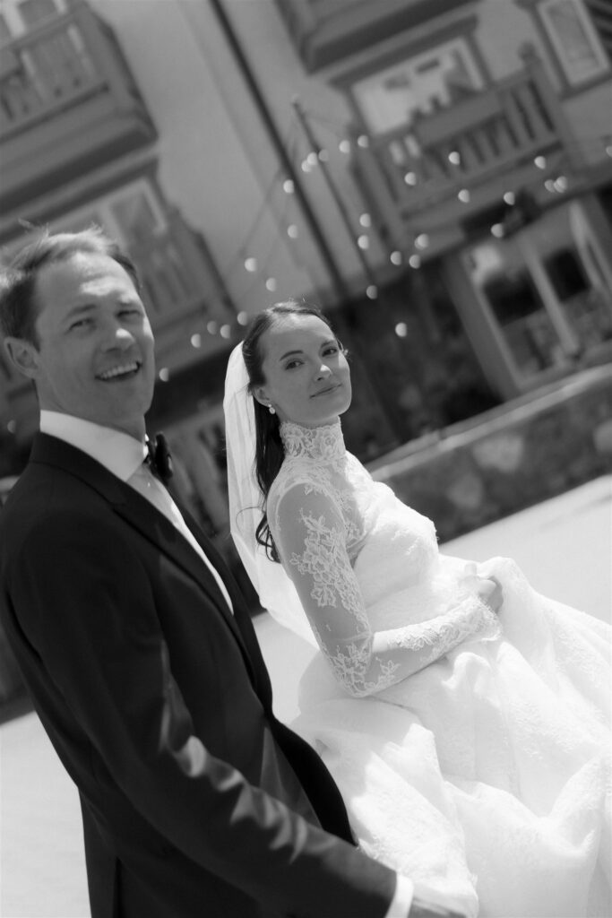 Then came the wedding day at Vail Chapel. This is where things got a little ironic in the best way. LaRose had envisioned a snowy, white spring mountain wedding, which, given the winter we had, felt… optimistic. Snow had been pretty minimal all season, but somehow, the night before, Vail delivered just enough of a dusting to transform everything. It was subtle, but stunning. By the time the ceremony began, the sun was back out.